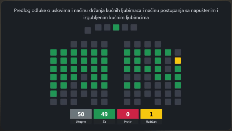 Međutim, naše sugestije koje su se odnosile na to da se u član 8 odluke Prostor za držanje kućnih ljubimaca dodaju stavovi: „Za pse rođene 2030. godine i nakon toga zabranjuje se držanje na lancu, osim vezanje u kratkotrajnim intervalima na propisanu dužinu i ne duže od 2 sata dnevno” i „Zabranjeno je držanje na lancu, odnosno vezanje pasa mlađih od 6 mjeseci, te pasa kojima zbog zdravstvenog stanja ili drugih okolnosti vezanje ozbiljno narušava dobrobit” nisu uvrštene u nacrt, prvi dio zbog neslaganja dovoljnog dijela radne grupe, a drugi dio je radna grupa usvojila, ali se isti stav nije našao u usvojenom prijedlogu, da li zbog propusta Sekretarijata ili iz drugih nama nepoznatih razloga, ostaje nejasno u trenutku pisanja ovog teksta.